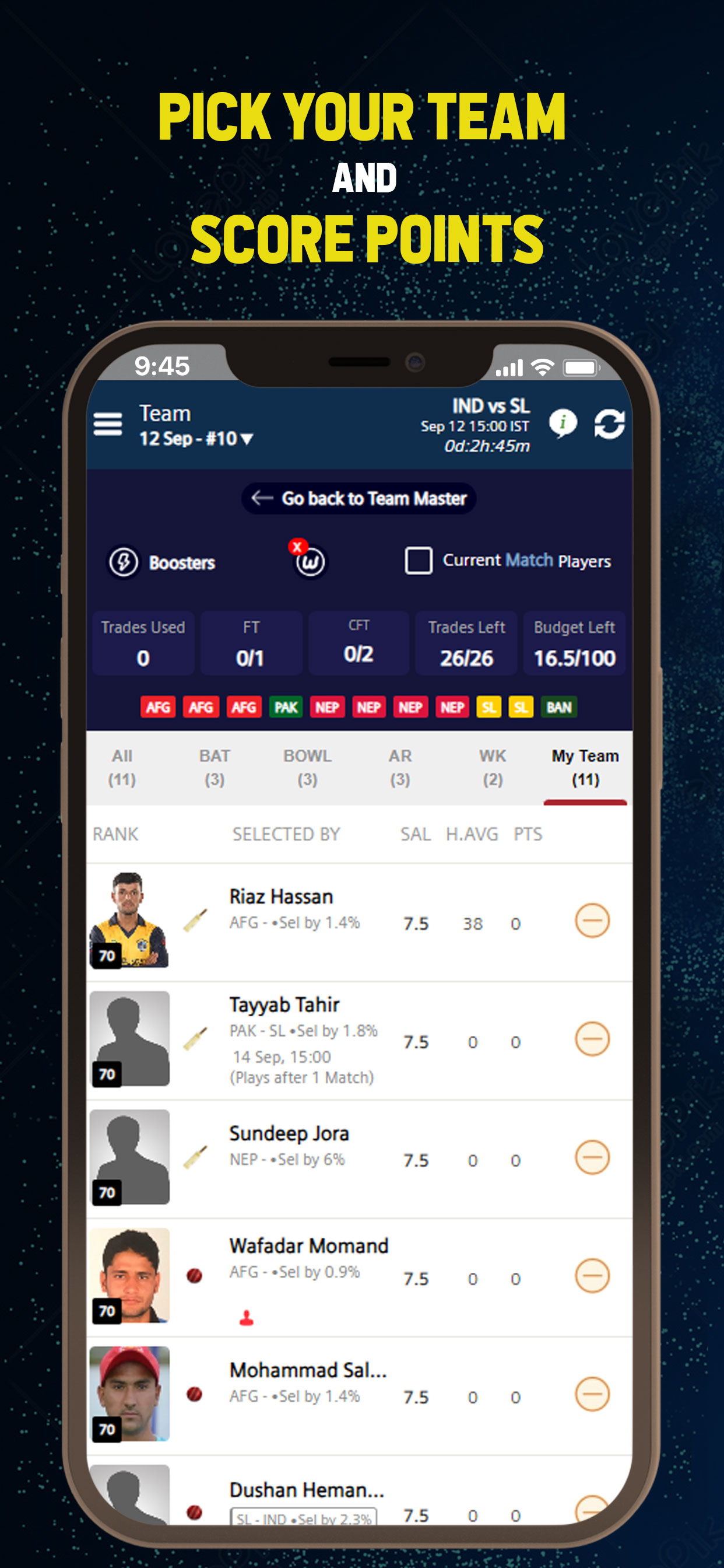 Join contests, create your team & win cash daily, weekly & for tournament.