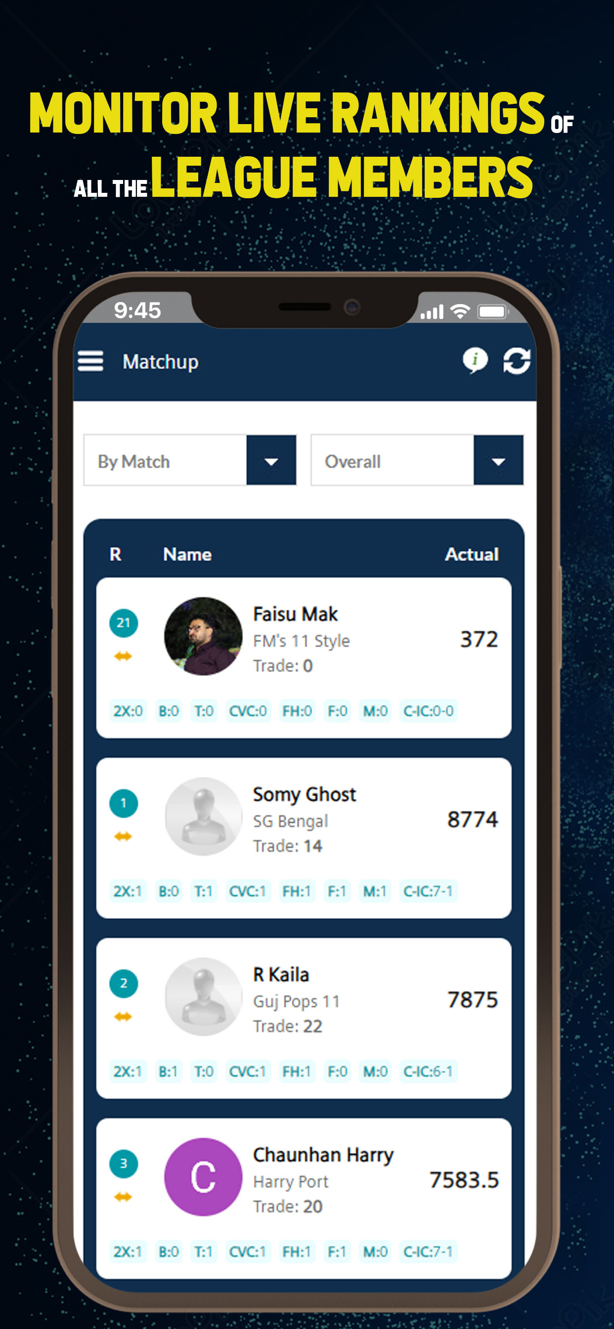 | Play fantasy cricket for both daily matches and tournaments with over 13.7 Lakhs sports crazy fans on RMS Platform & live your ultimate dream of being a team owner. Explore our salary cap fantasy and prediction contests. Use your sports knowledge, skill and our research tool for player projection and news to be a winner every match! We also have live 1-o-1 to let you chat and challenge any user instantly & also play with your friends by creating your private league. |